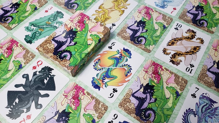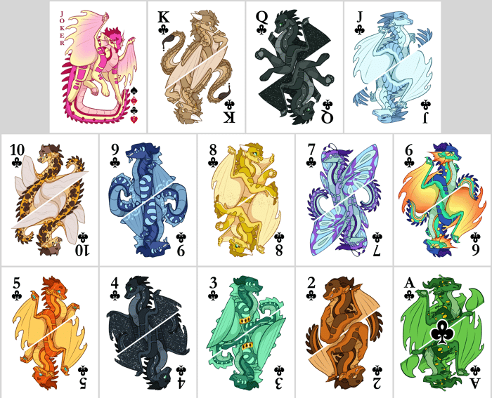 Custom, full color playing cards designed by Cyprus! This is a full deck of 52 cards, plus 2 jokers! Perfect for Go Fish, War, Poker, and other standard card games!