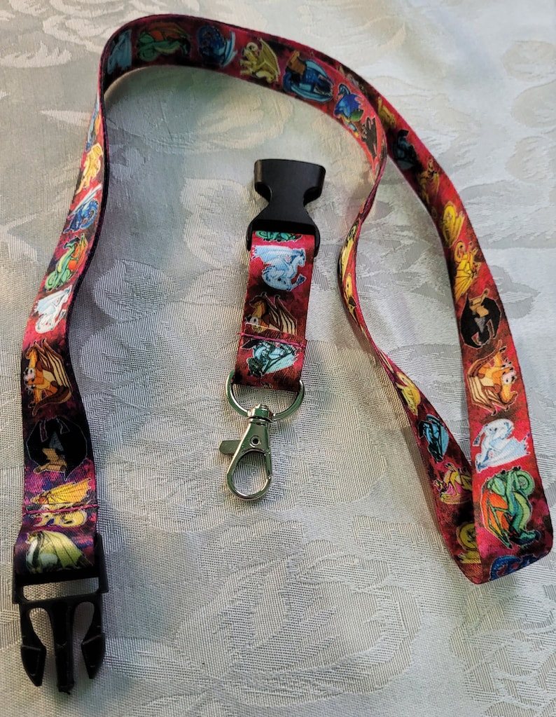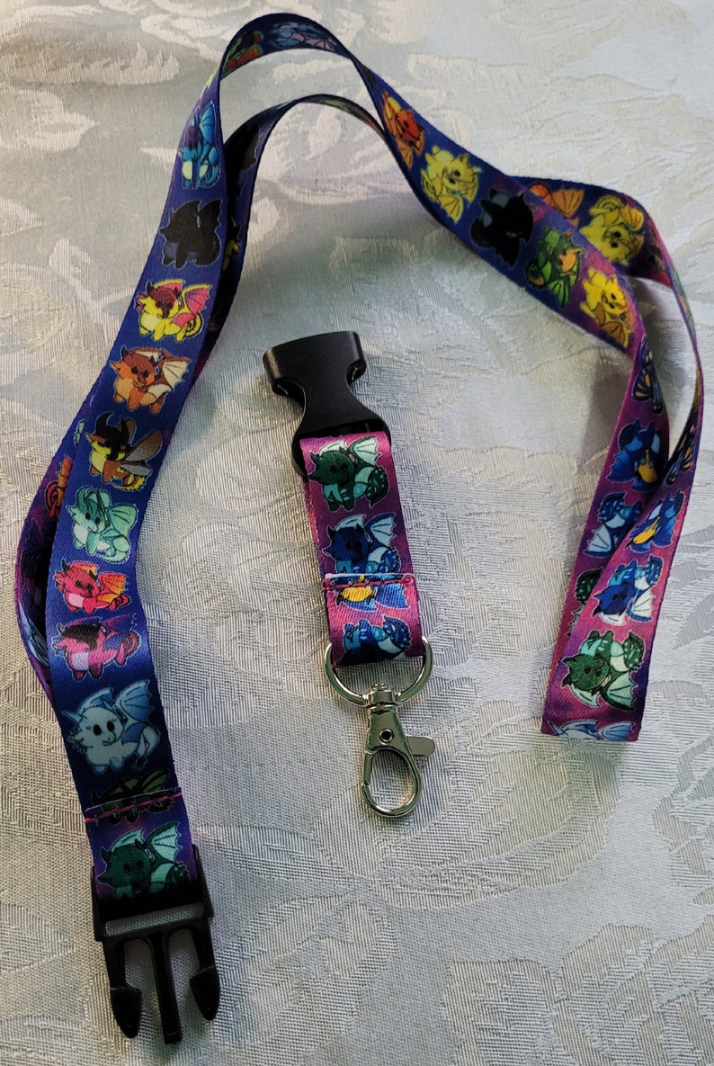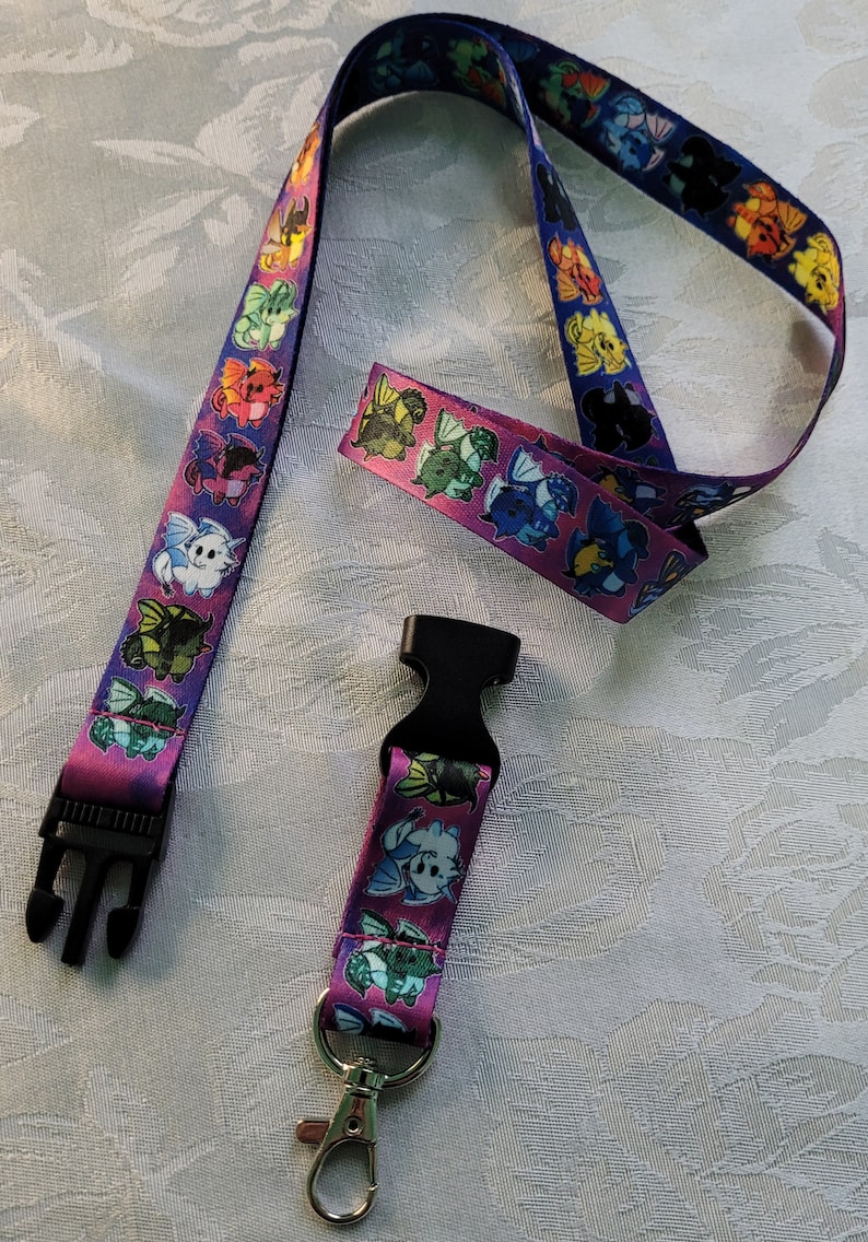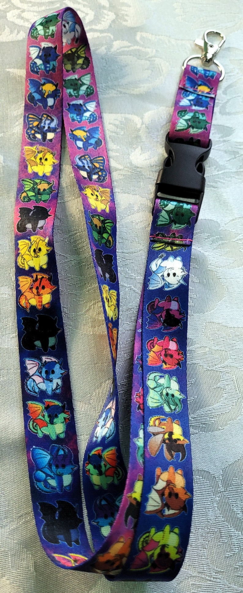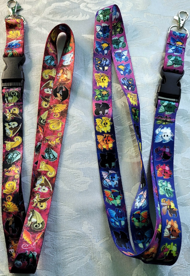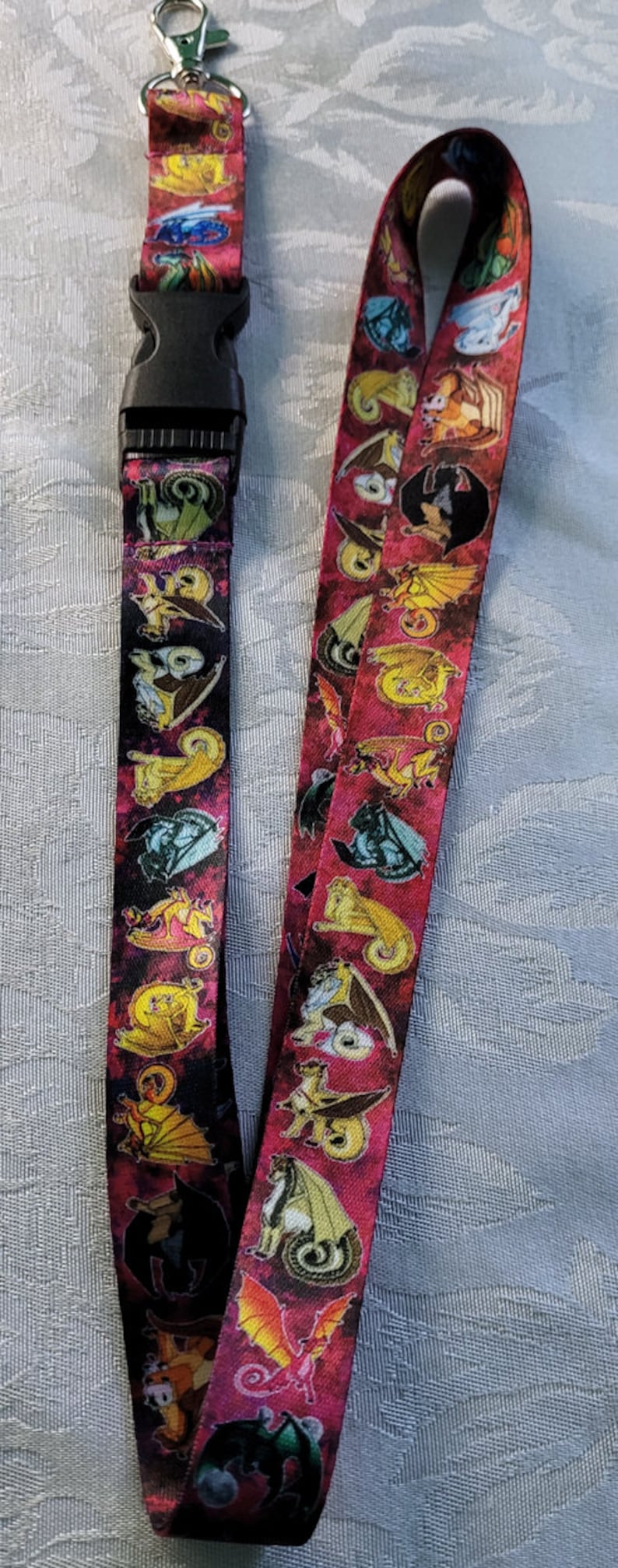 Enhance keeping your keys, charms, access cards and other simular items together with these cute lanyards! These ones have a variety of Wings of Fire characters on them, but if that isn't your thing, then they are also perfect for any dragon lover! There are two different styles available, a chibified version of the dragons on a blue background, and the dragons in a more standard proportions on a red background. Both style has a "breakaway" style of lanyard, a feature that is less common, but also very handy!