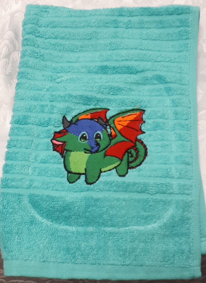Display your love for Wings of Fire with these fully functional, embroidered dragon hand towels! We have them in a variety of colour of your choosing . The design is on the corner on one side, so they still show off the design but are still fully functional as a hand towel. Truly the best of both worlds! They are a cute addition to any home decor.