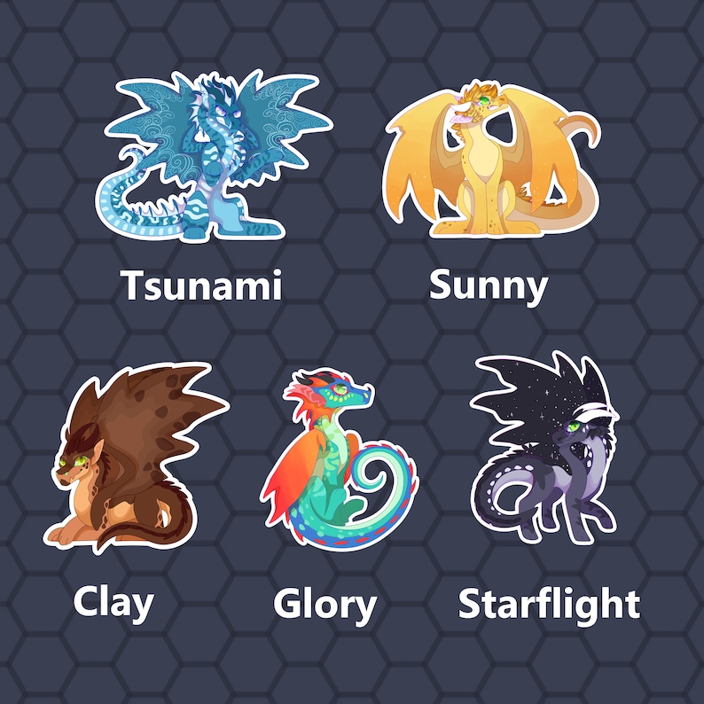 Double sided, clear acrylic keychain inspired by your favorite prophecy solving crew from the best selling book series "wings of Fire" by Tui. T. Sutherland.