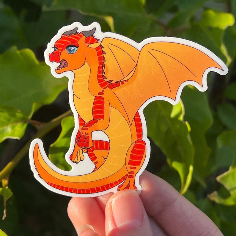 Vinyl, gloss stickers inspired by the second flight of dragonets. Moonwatcher, Qibli, Winter, Peril and Turtle can go on many journeys together, including going on water bottles, laptops, windows, and more!