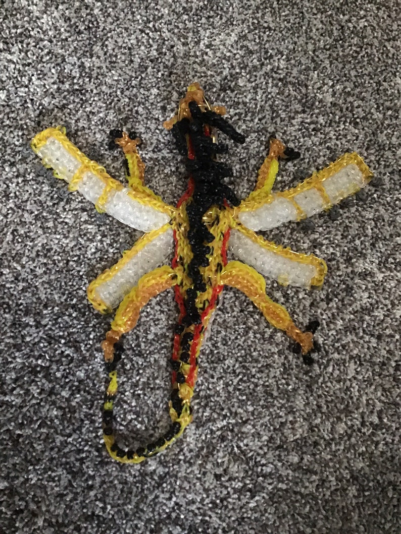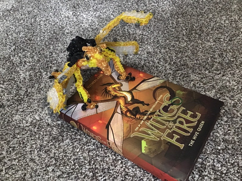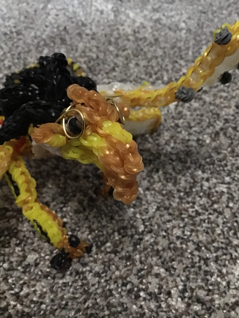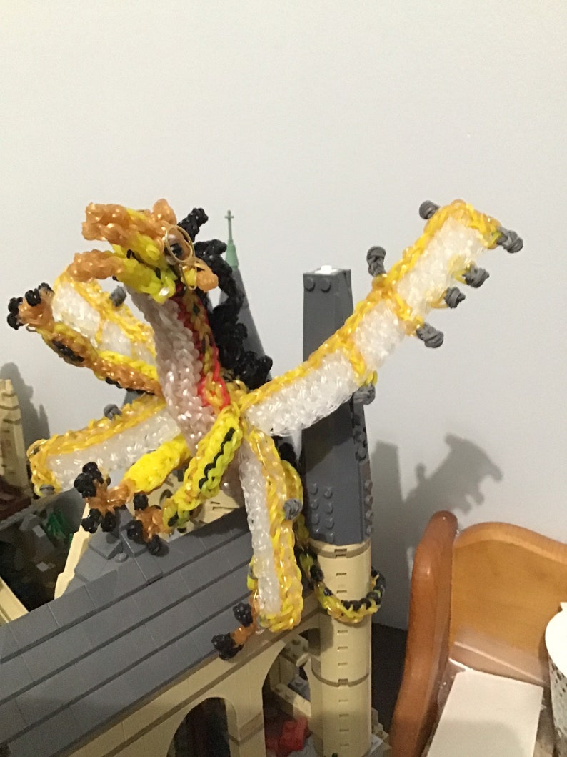 Rainbow Loom Rubber Band Dragon from Wings of Fire. Cricket the hivewing. Design by Maile based off other dragon designs by Courtney Nicole.
