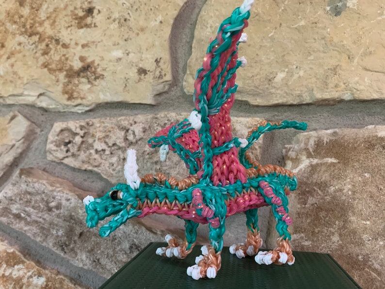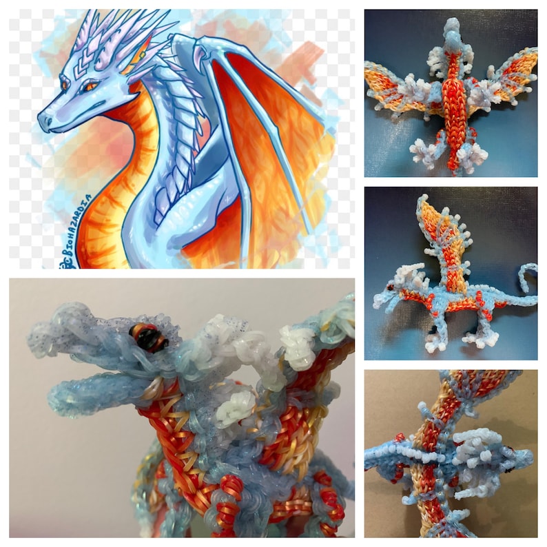 Made to order. Rainbow Loom Rubber Band Dragon based on Wings Of Fire. Medium. **comes with mini dragon (not pictured) Design by Maile