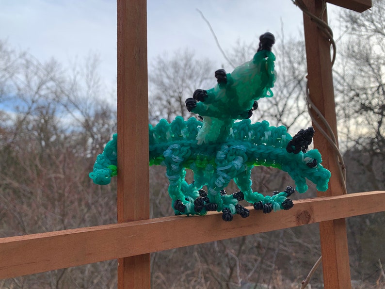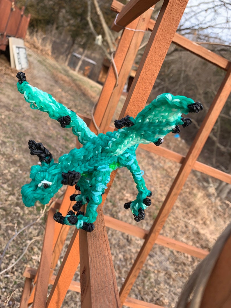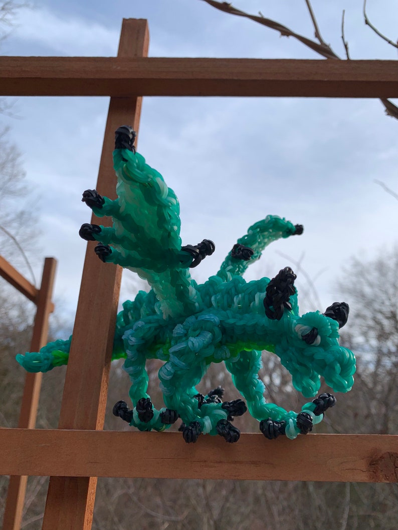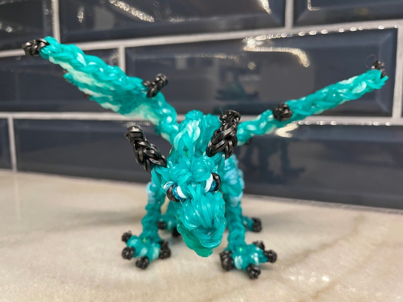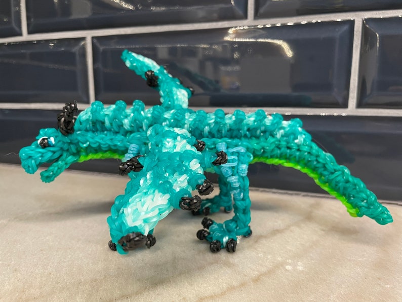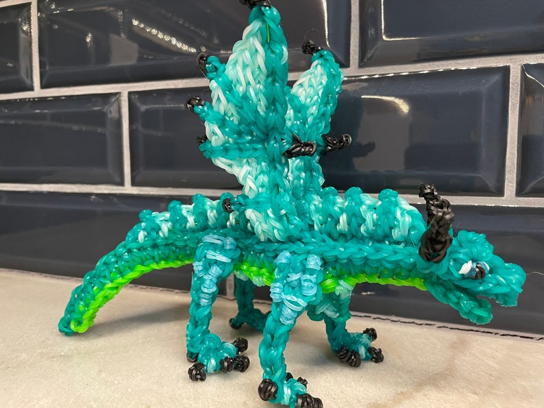 Two in stock. Rainbow Loom Rubber Band Dragon from Wings of Fire. Turtle the Seawing. Medium. Part of the Jade Mountain Prophecy. **comes with mini dragon (not pictured) Design by Maile
