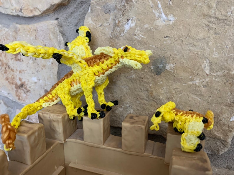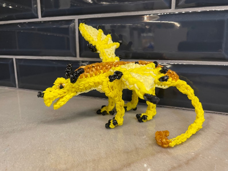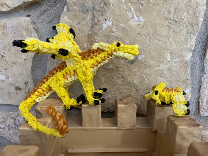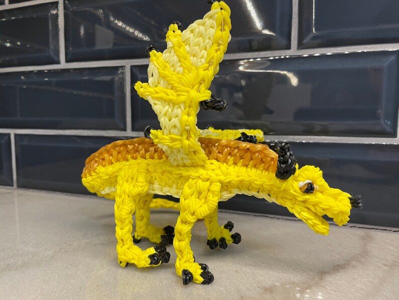 Rainbow Loom Rubber Band Dragon from Wings of Fire. Qibli the Sandwing Medium. Part of the Jade Mountain Prophecy. **comes with baby dragon. Design by Maile