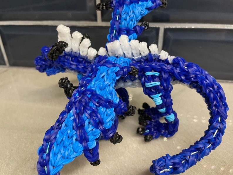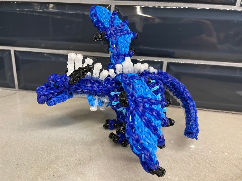 Made to order. Rainbow Loom Rubber Band Dragon from Wings of Fire. Typhoon the Seawing Icewing. Medium. **comes with mini dragon (not pictured) Design by Maile