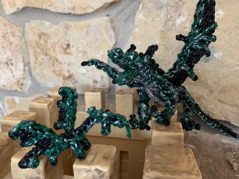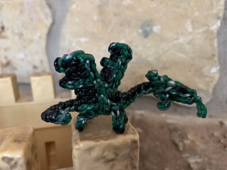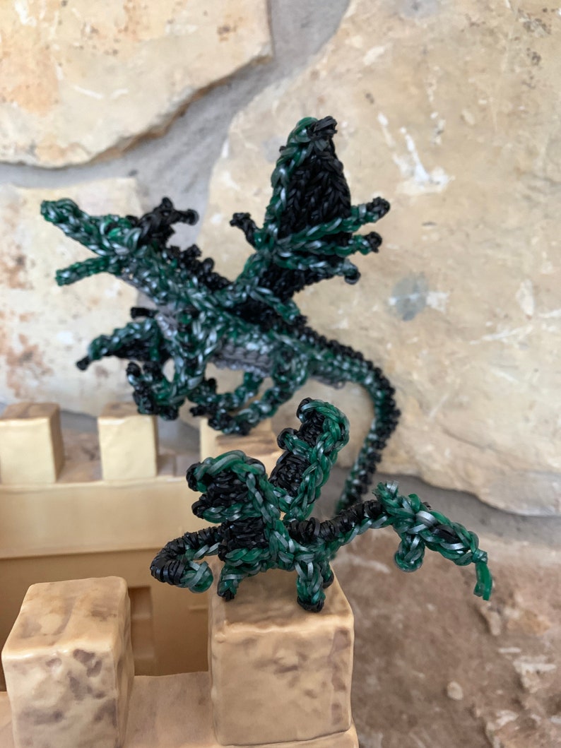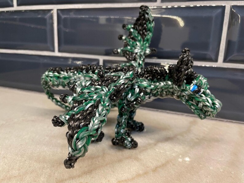 Rainbow Loom Rubber Band Dragon from Wings of Fire. Moonwatcher the Nightwing. Medium. Part of the Jade Mountain Prophecy. Comes with mini dragon. Design by Maile