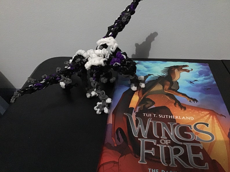 Rainbow Loom Rubber Band Dragon from Wings of Fire. Nightwing Medium. One of the five dragonets of prophecy. **comes with mini dragon (not pictured) Design by Maile