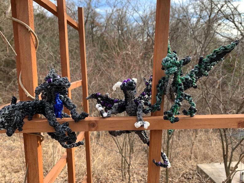 Get this exclusive pack with fatespeaker, moonwatcher, and starflight! Made to order. Rainbow Loom Rubber Band Dragon from Wings of Fire. Peril the Skywing. Medium. Part of the Jade Mountain Prophecy. Design by Maile