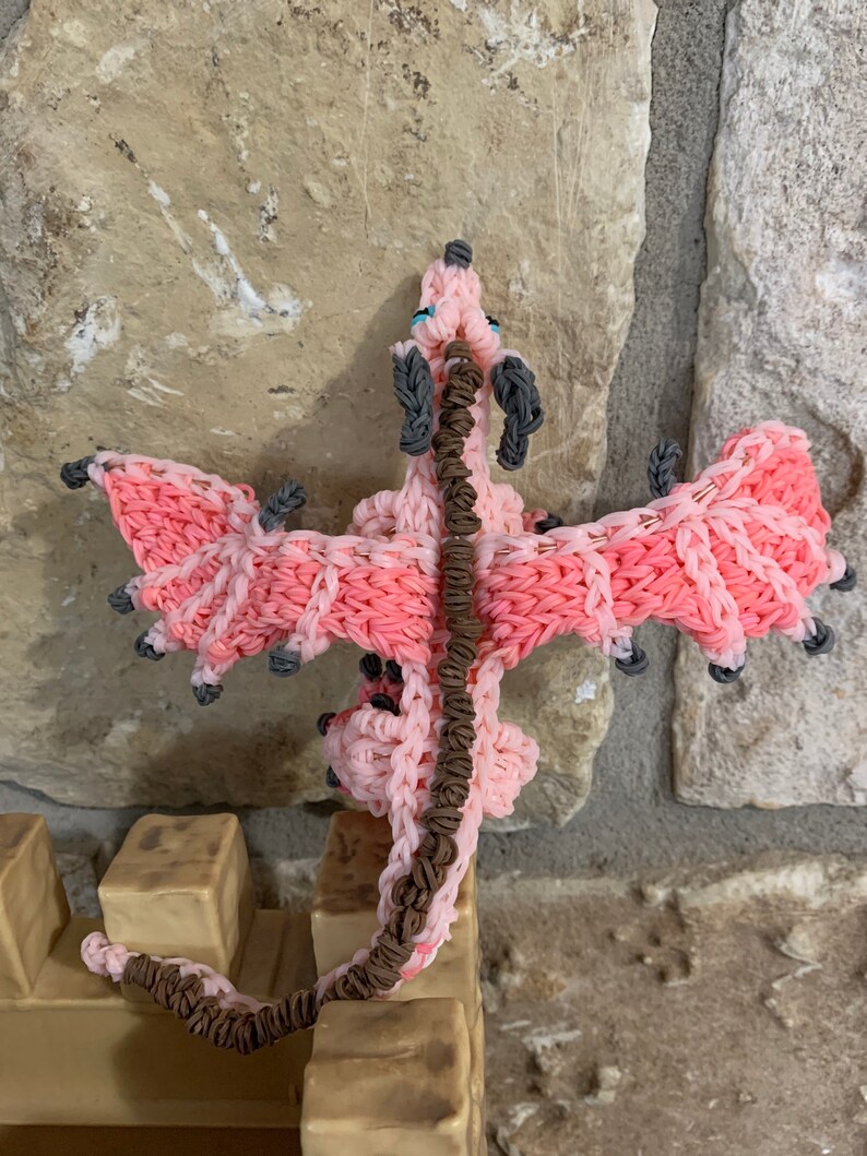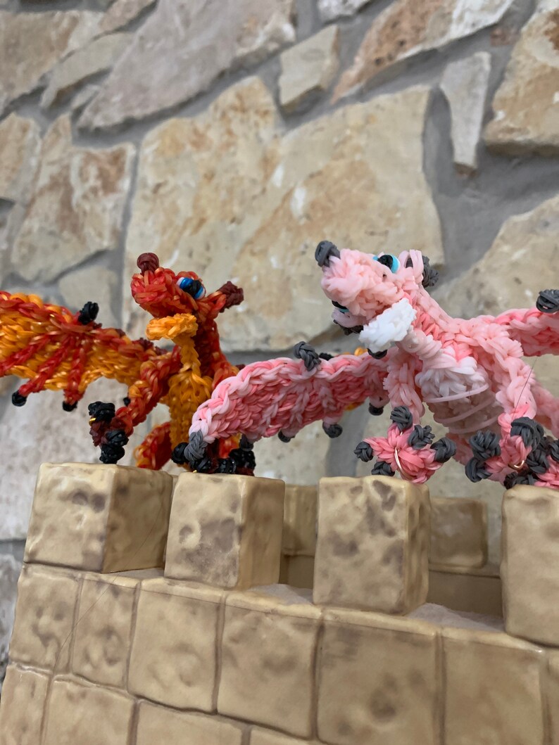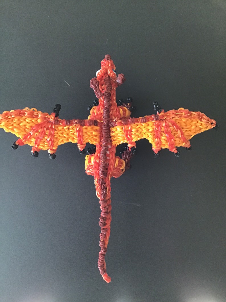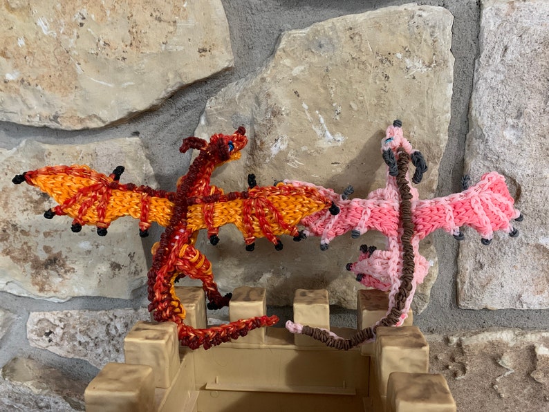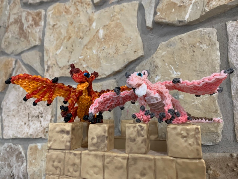 One set in stock. Rainbow Loom Rubber Band Dragon from Wings of Fire. Peril the Skywing and Sky the Skywing. Medium. Part of the Jade Mountain Prophecy. Design by Maile