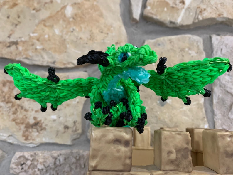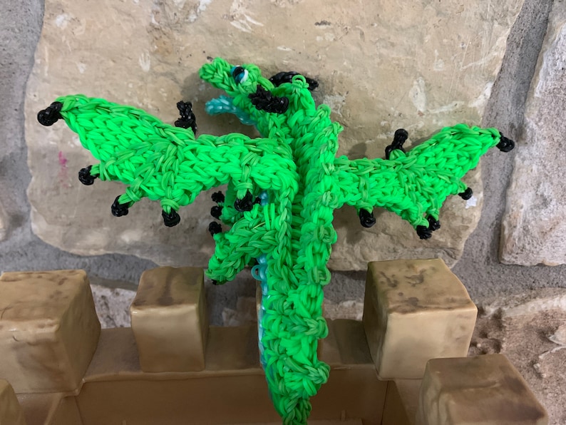 Made to order. Rainbow Loom Rubber Band Dragon from Wings of Fire. Fathom the Seawing. Medium. **comes with mini dragon (not pictured) Design by Maile