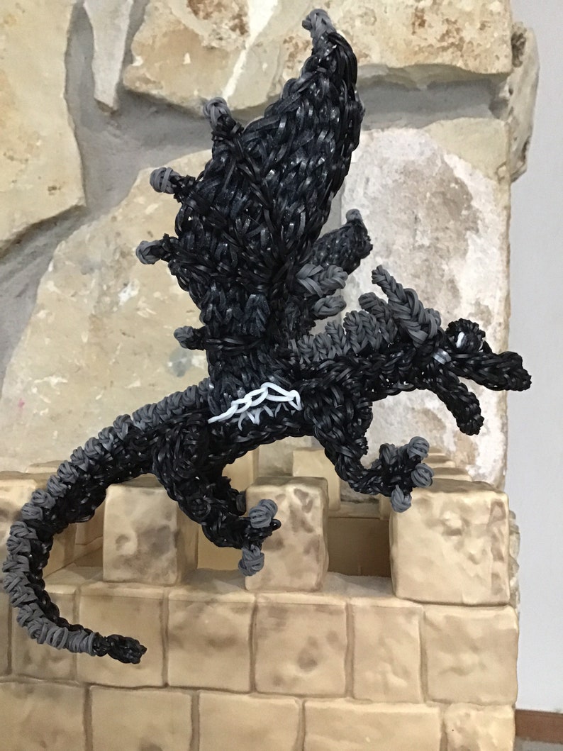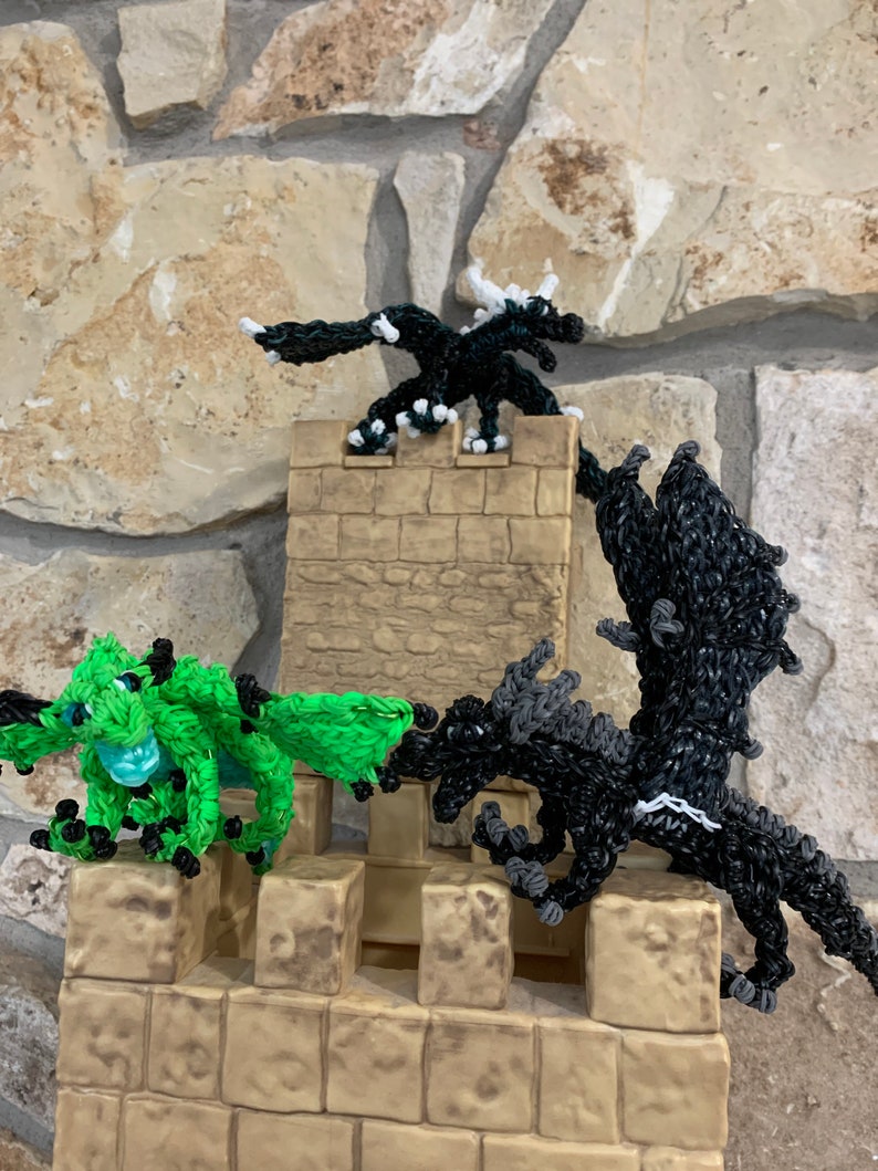 Made to order. Rainbow Loom Rubber Band Dragon from Wings of Fire. Clearsight the Nightwing, Fathom the Seawing, Darkstalker the Nightwing. Medium. Design by Maile
