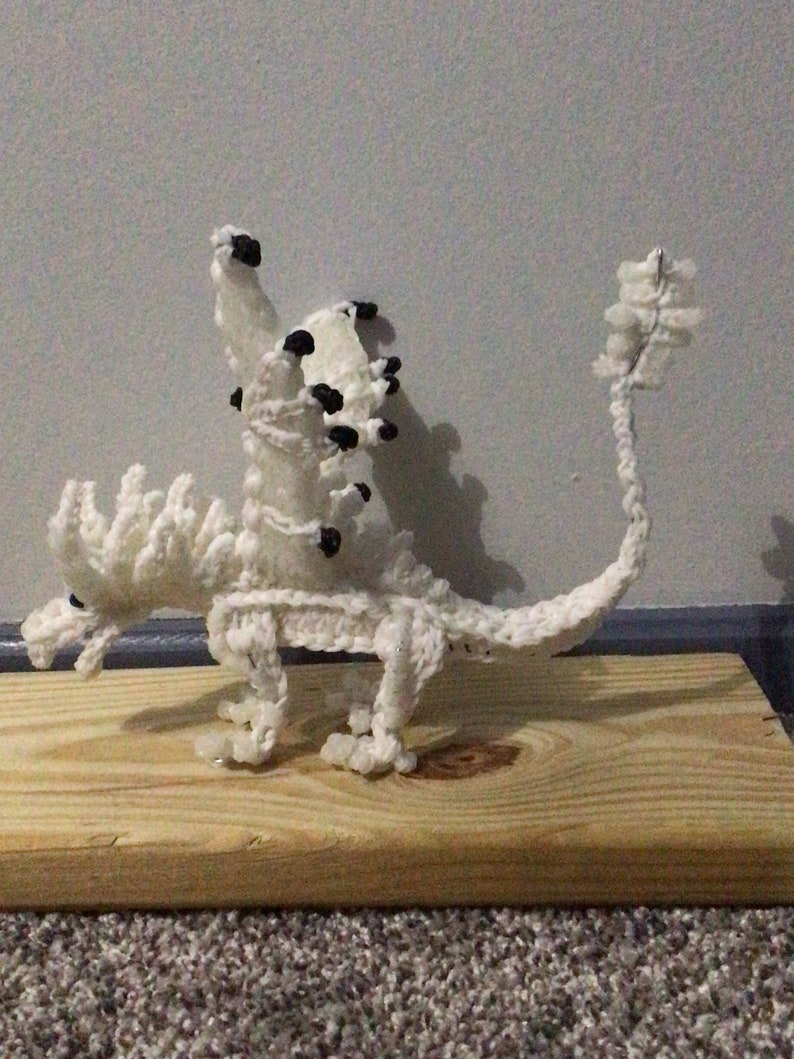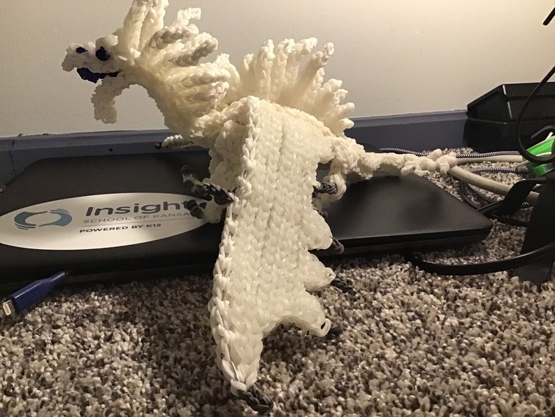 Made to order. Rainbow Loom Rubber Band Dragon from Wings of Fire. Snowfall the Icewing. Medium. Part of the Lost Continent Prophecy. Made with solar bands which change dramatically in the sun. Design by Maile