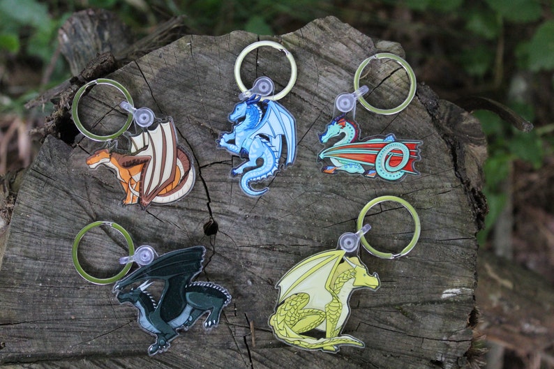 Keychains are solid acrylic on one side with the design printed on the other.