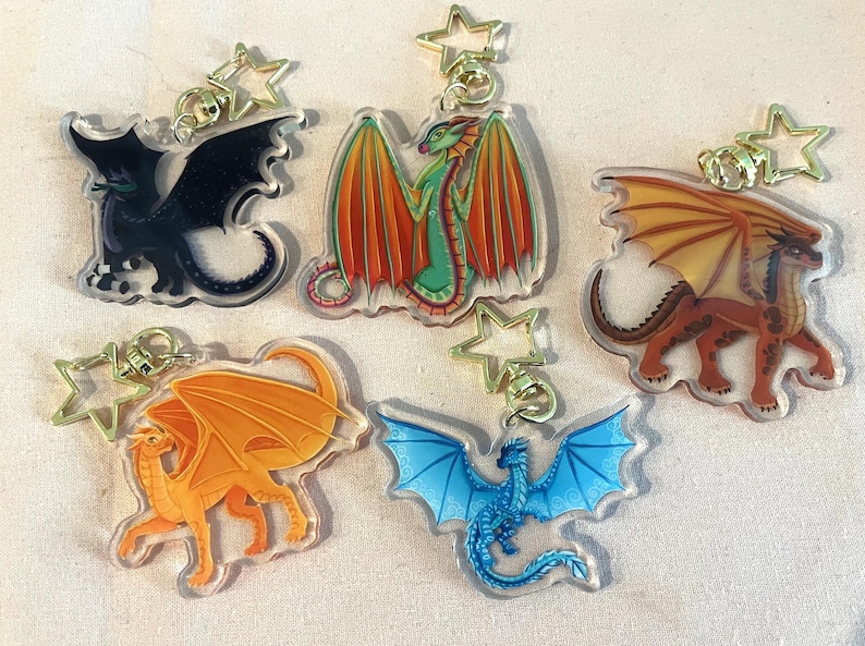 Keychains and stickers of your favorite dragonets of destiny from the WOF series. As well as your favorite furies from HTTYD. The artwork is illustrated by be me on my ipad with Procreate. Absolutely NO AI was used for anything.