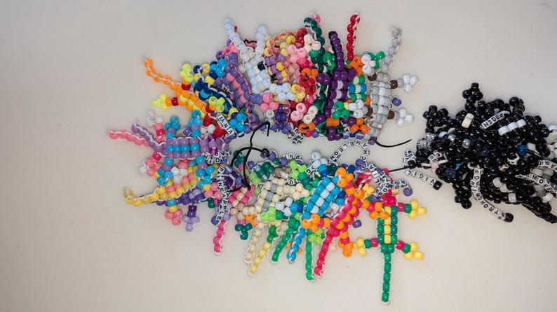 Beaded lizards coloured like every character from wings of fire. if the character is shown or has a description, I can make it. I offer multiple ways to show off your lizard, including keychains, necklaces, and bracelets. on my necklaces, I have put several loops to affix the tail, such as on the snout, the tail base, and the front and back talons, so you can wear your lizard multiple ways. if you would like any changes or specifics to the character, please note those on the personalization. for any specific characters, please ask on this post, as I can't put them all on here: https://www.reddit.com/r/wingsoffirememes/s/goTTgfesmr