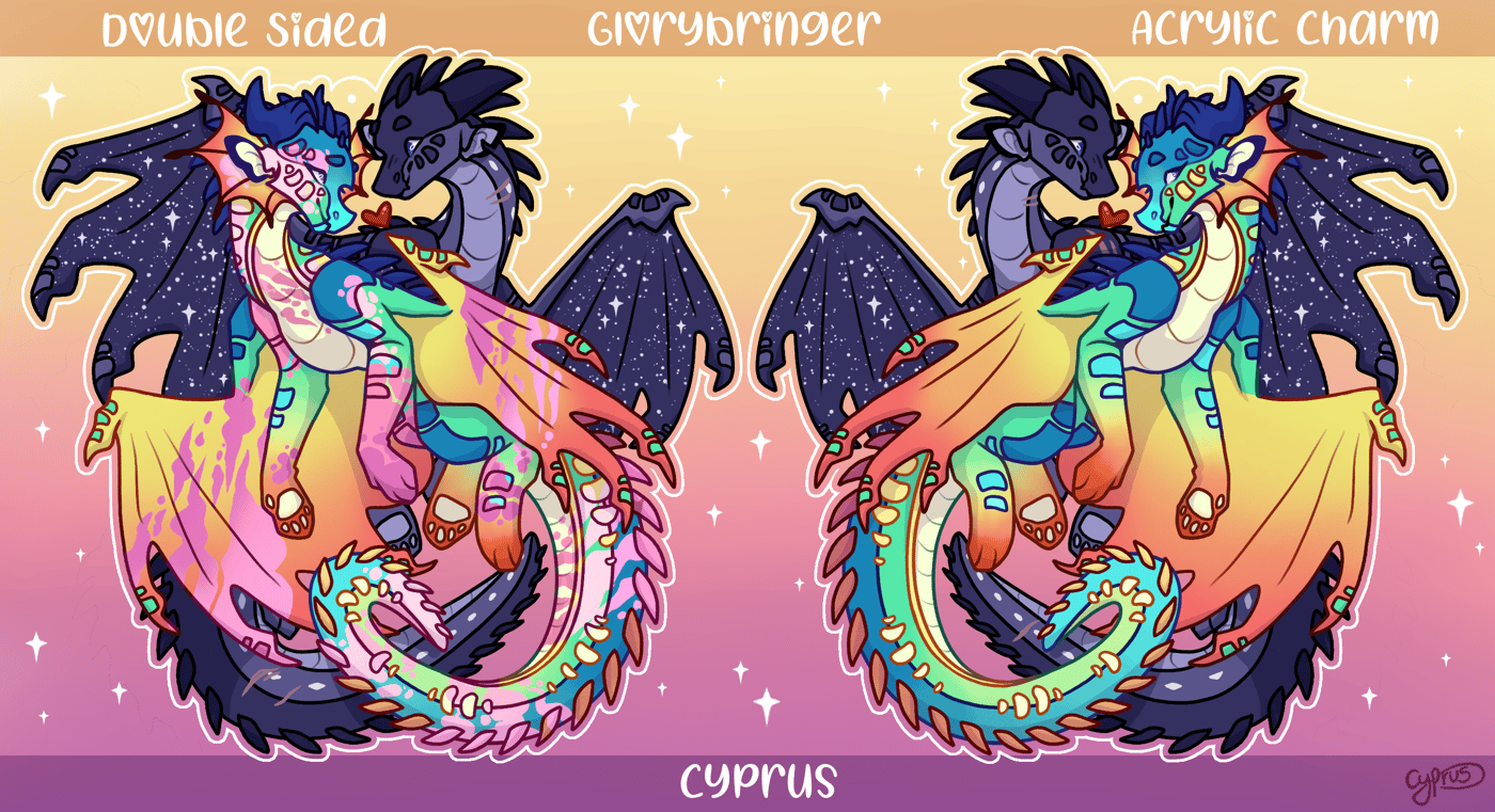 A 3'' double layered acrylic charm featuring Glorybringer! This charm is double sided, showing the art on both sides. Additionally, double layered acrylic charms are protected on both sides by the acrylic, meaning the art will last much longer than a normal single layer acrylic charm!