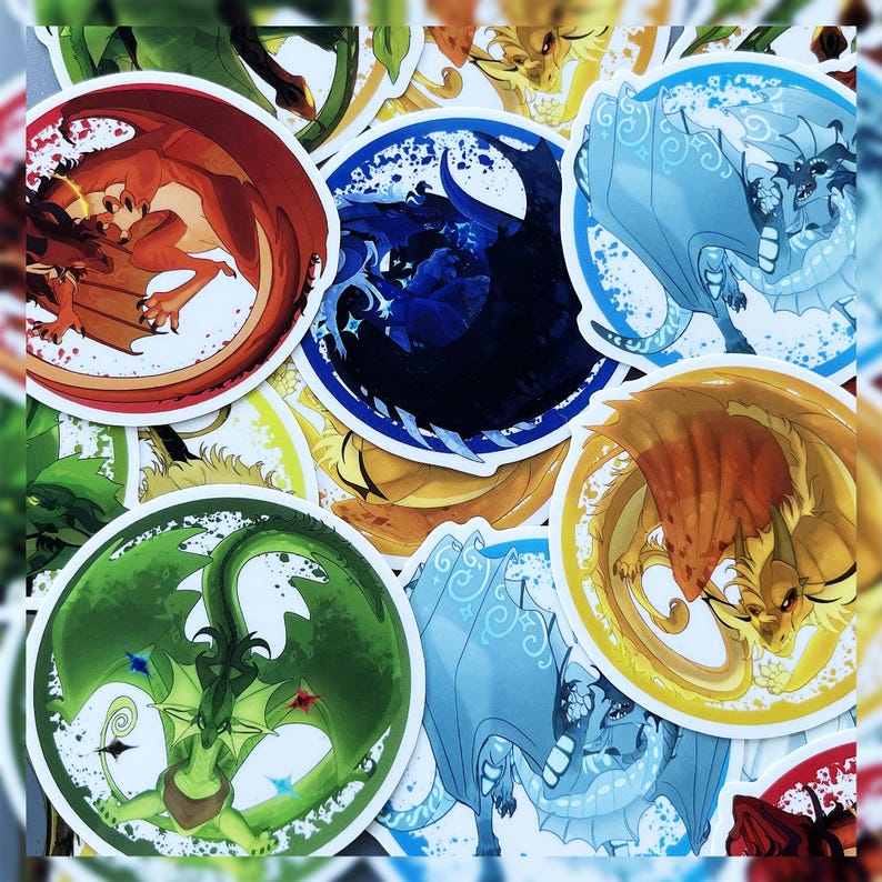 3 Inch transparent stickers of some of the most evil Wing's of Fire Characters!