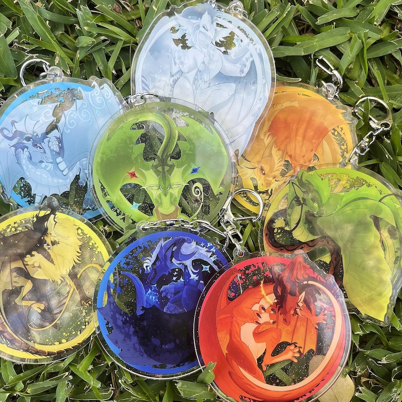 3 Inch Glitter Epoxy Keychains of some of the most evil Wing's of Fire Characters!