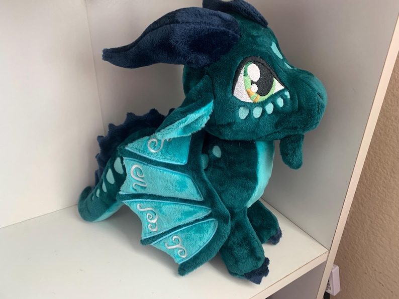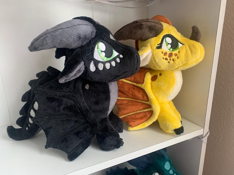 They're back in stock for the holidays! This plush is customizable so you can change a lot of details! This plush is made with soft fabric, quality stuffing, and embroidered details. The eyes, wings, and scales are embroidered with an embroidery machine. Please be specific with the customization and message me if you want to change or add details (see paragraph below). If you would like your plushie to ship faster for a special event such as a holiday etc. please message me and I might be able to get it shipped faster, no guarantees though.