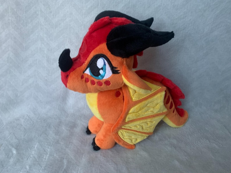 I have a seperate listing for completley customizable plushies. Because these take a lot more time, completley customizable plushies cost more. If you want a plushie that has major embroidery design changes, major shape changes, or accessories, please use the other listing titled Very Customizable Wings of Fire Plushies. These things require me to use an embroidery software, or draft sewing pattern changes which may require multiple tries. If you want to change smaller details such as color of the fabirc or embroidery thread or mix elements from multiple types of dragons into one (ex: a seawing dragon with starry wings), or buy a dragon without customization use this listing! If you have questions about this message me!