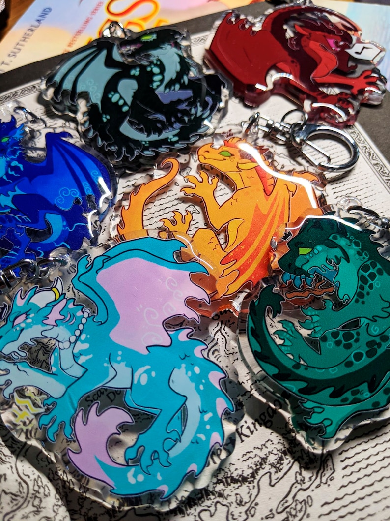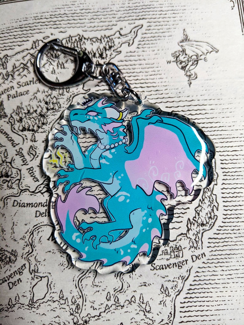This is a 2.5 inch, clear acrylic charm collection with a secure lobster clasp. The artwork is double sided! ~