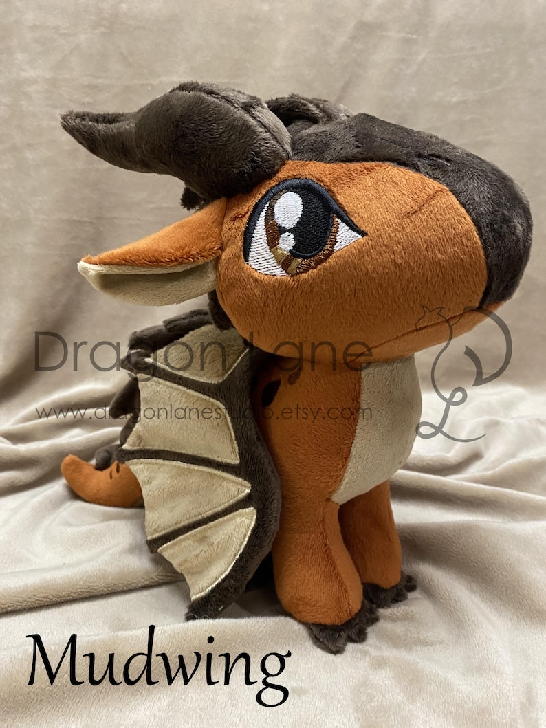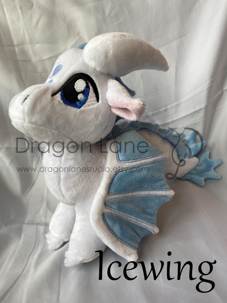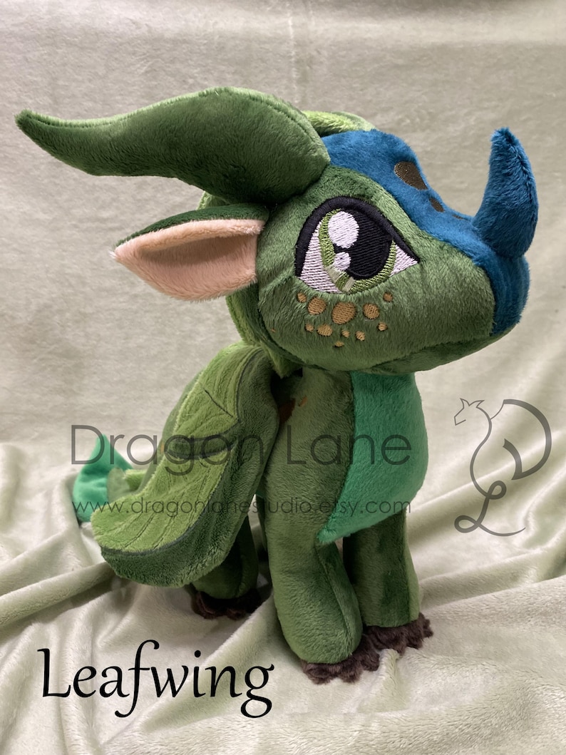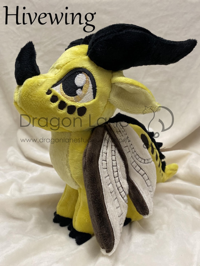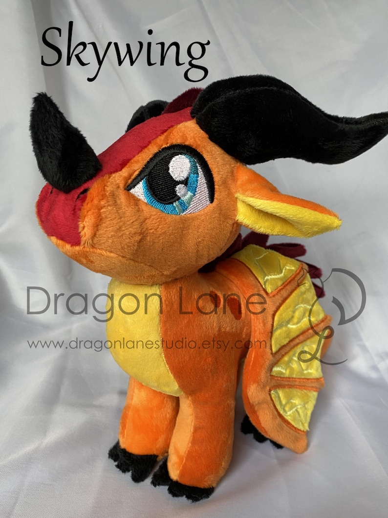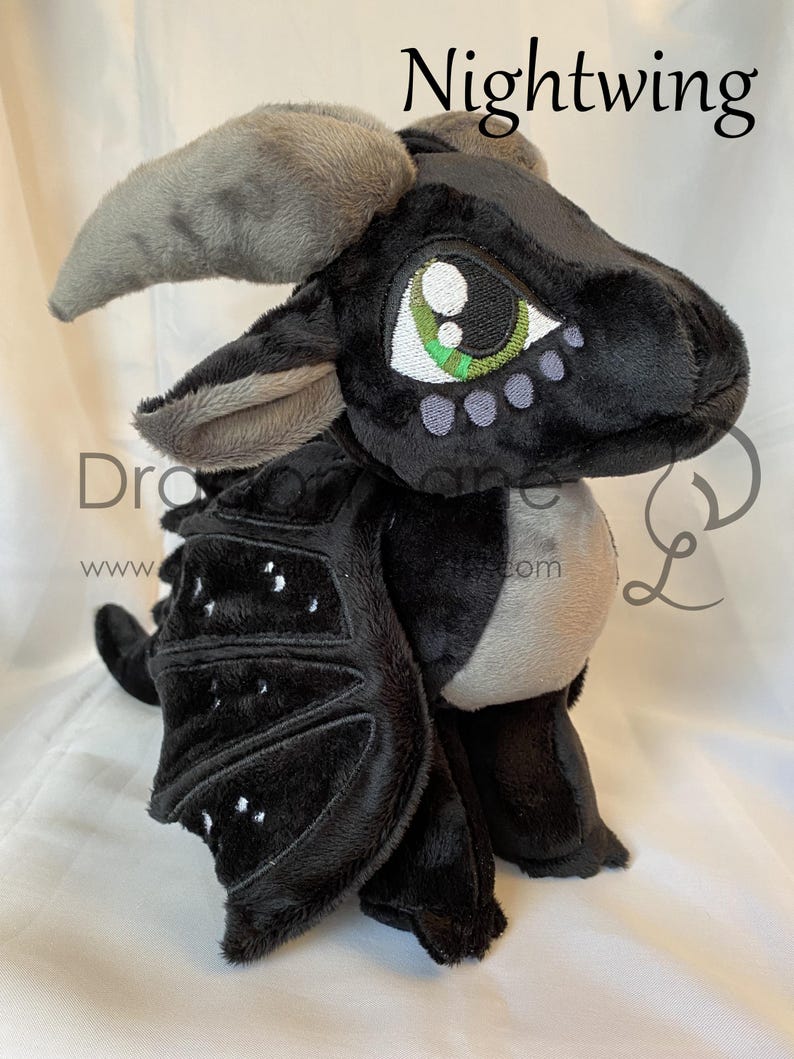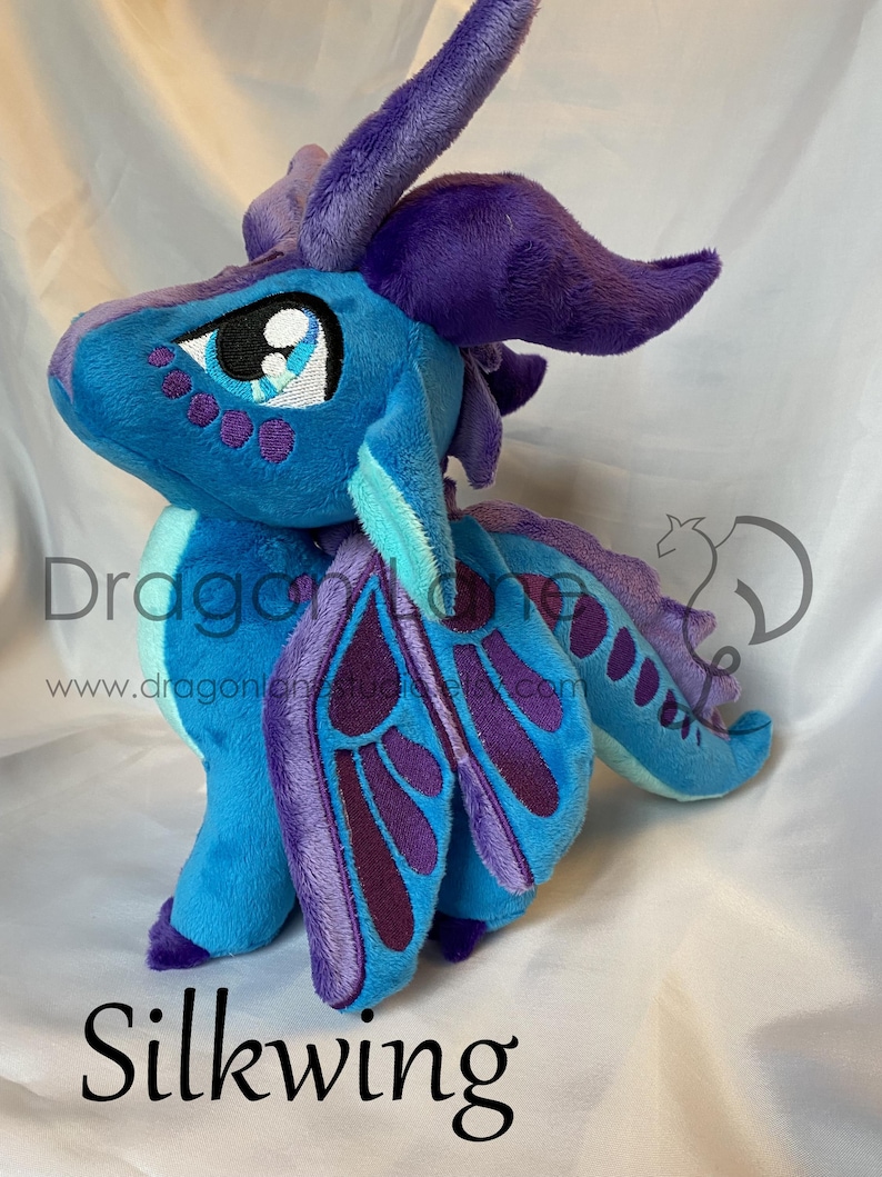 This listing is for the deluxe version, with full embroidery detail on the wings and the body. The finished plush measures approximately 11" tall, 11" long and 5" wide. Made of super soft minky fabric and stuffed with polyfil stuffing.