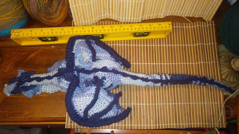 this is added labor time hand sewing sewing crochet and designing a piece that fits finished dragon perfectly trial and error and advanced skill making up pattern.