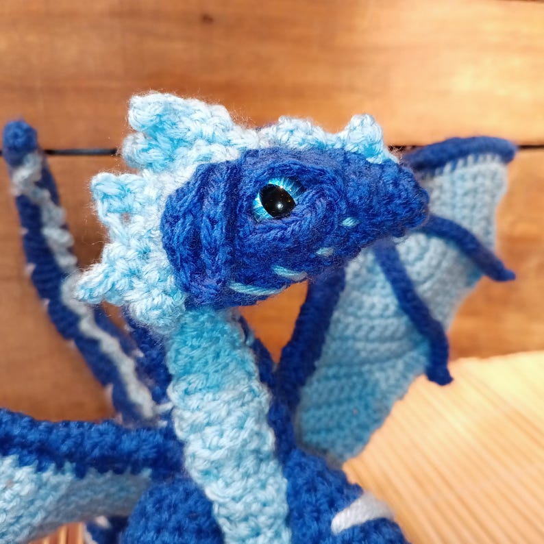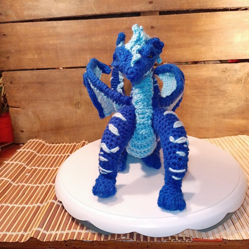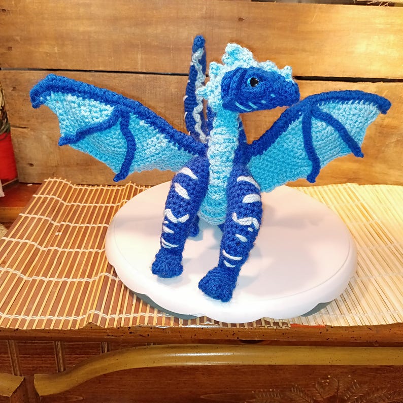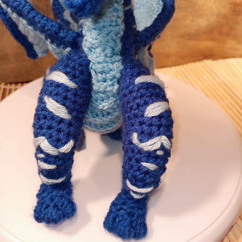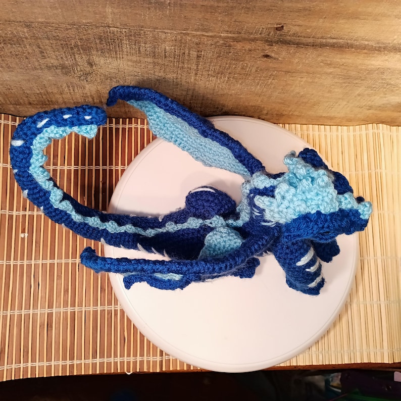 Wired and posed in curled up laying down pose. you can use color changing yarn gor scaling look( see post for sea dragon)