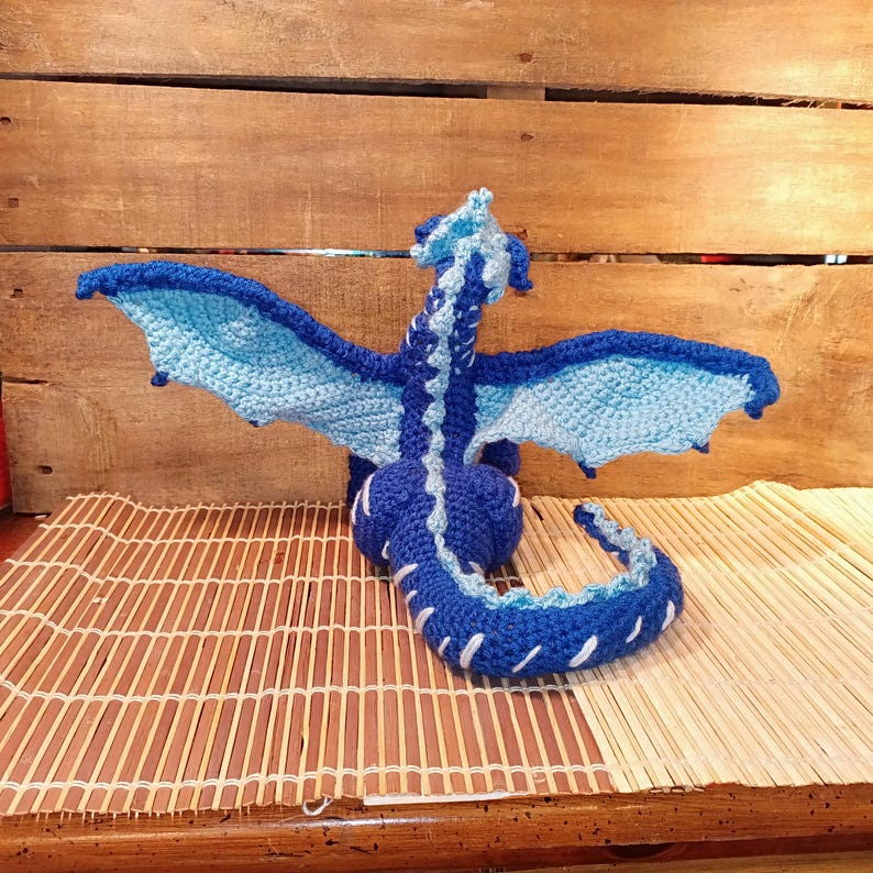 winga of fire dragon crochet made to order choose ANY colors Dark body and wing bones, yellow wings span, light beige belly.