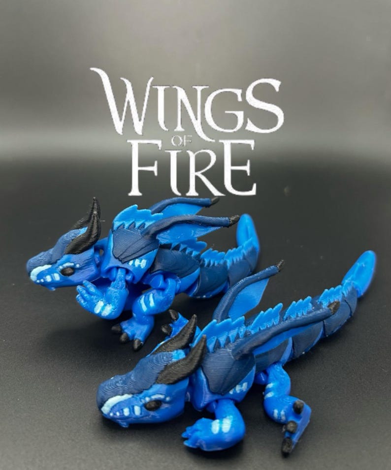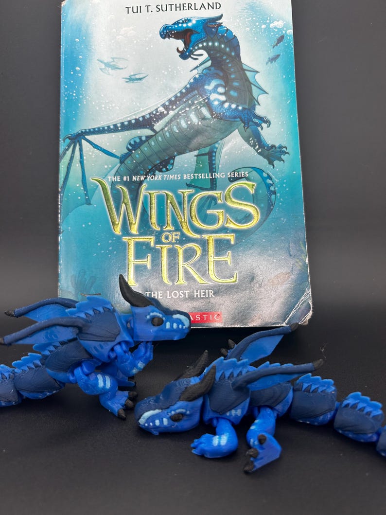 Based of the loved book series wings of fire, sea wing tribe💧🌊 . This flexible baby dragon is perfect for wings of fire fans. Made with a 3D printed you won’t be able to find this anywhere els. And I am currently working on the other tribes and will be releasing them so stay tuned to my shop 🤩👋.