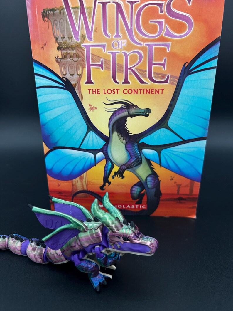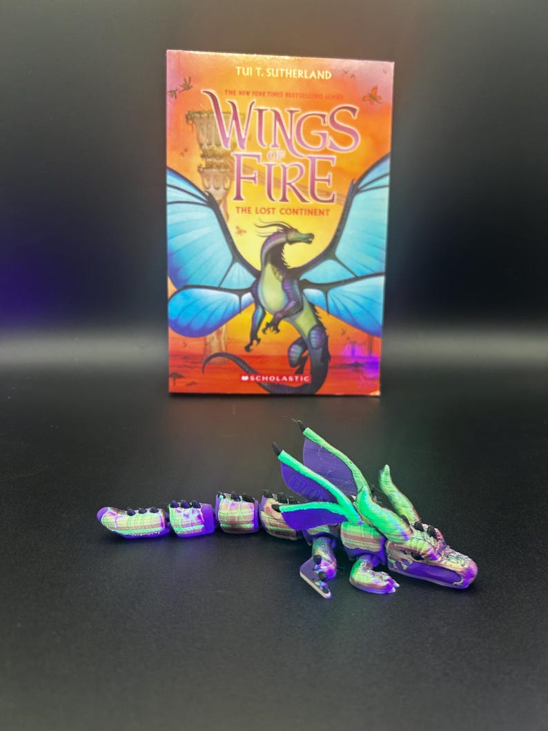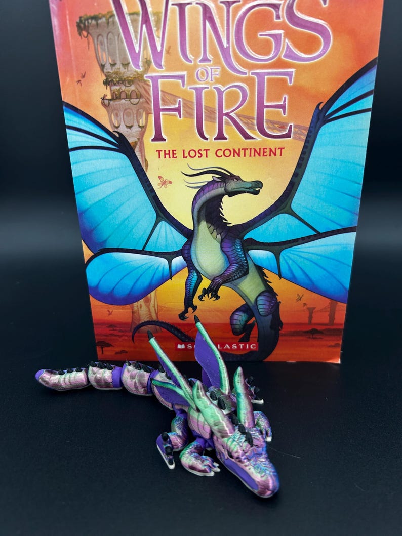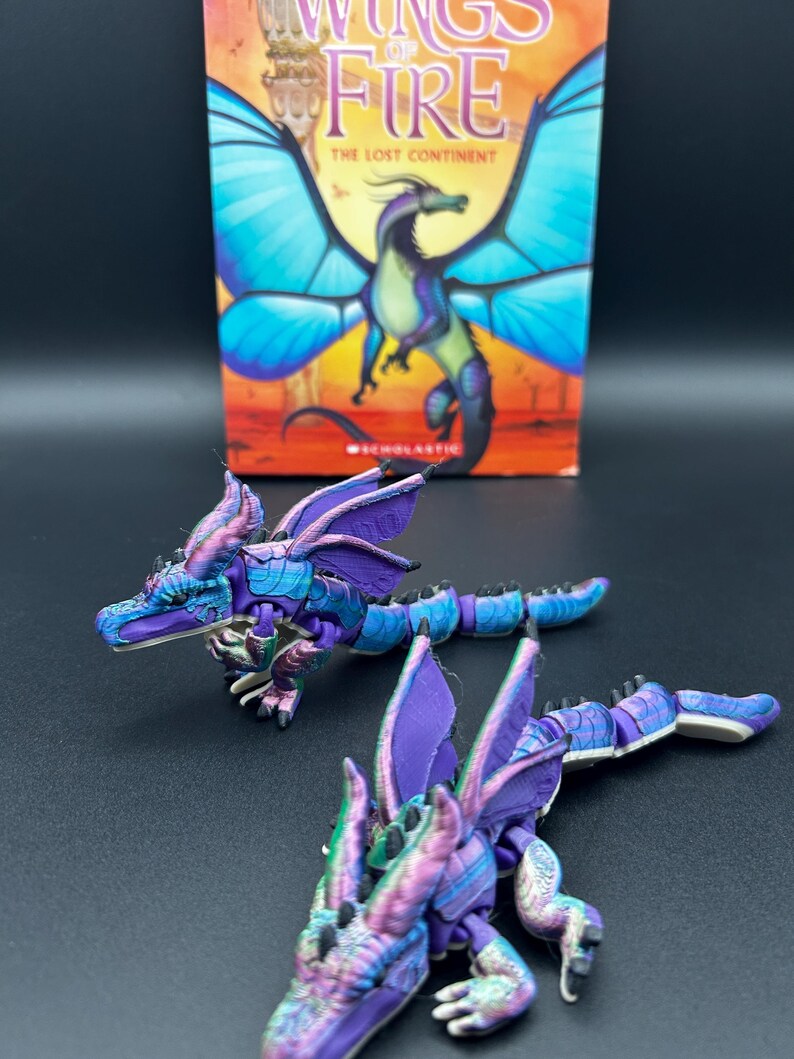 Based of the loved book series wings of fire, slik wing tribe🌈🕸️ . This flexible baby dragon is perfect for wings of fire fans. Made with a 3D printed you won’t be able to find this anywhere els. And I am currently working on the other tribes and will be releasing them throughout the month of may so stay tuned to my shop 🤩👋.