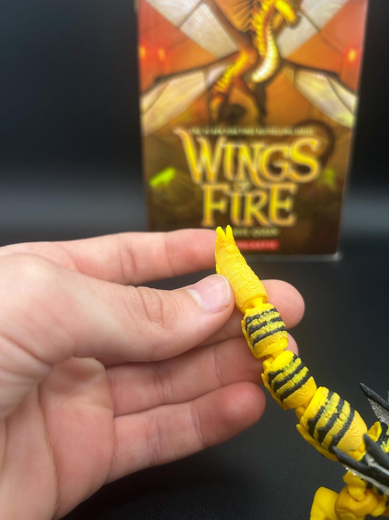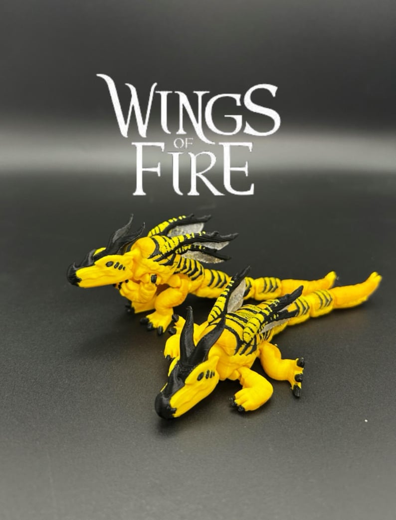 Based of the loved book series wings of fire hive wing tribe π π― . This flexible baby dragon is perfect for wings of fire fans. Made with a 3D printed you wonβt be able to find this anywhere els. And I am currently working on the other tribes and will be releasing them throughout the month of July so stay tuned to my shop π€©π.