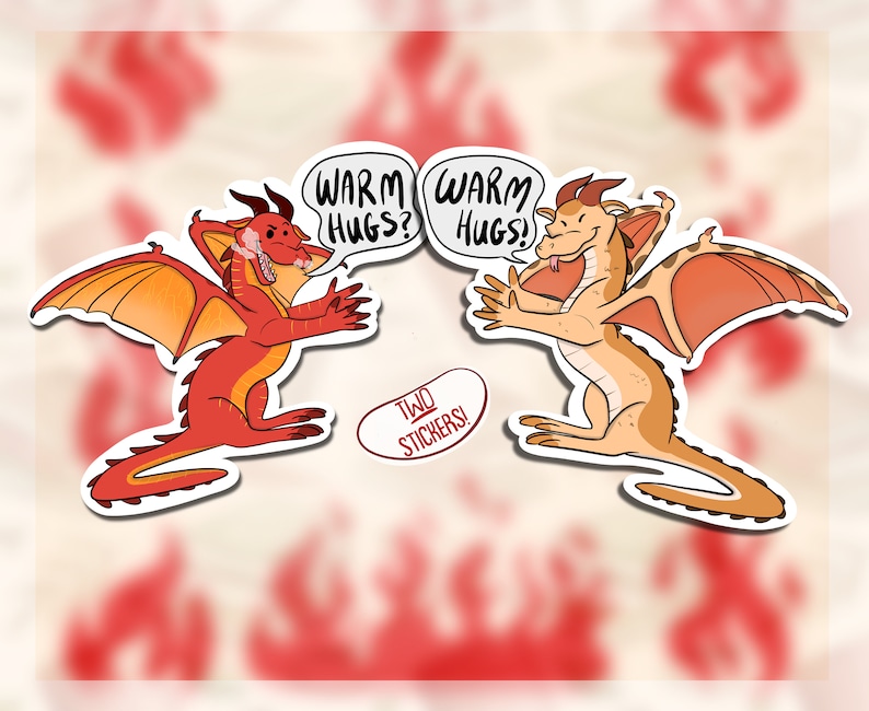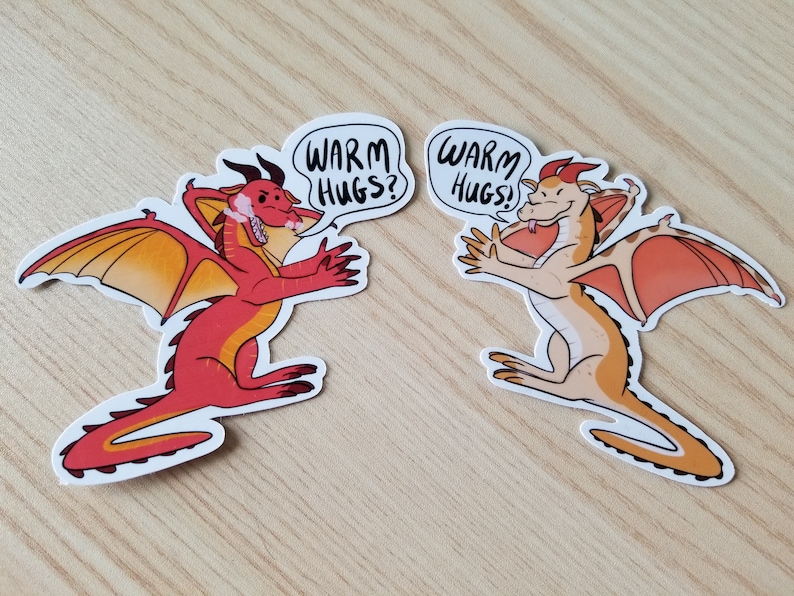 Your favorite mysterious, long-lost sibling duo from the Wings of Fire book series by Tui T Sutherland! You will get 1 Peril and 1 Sky, arms outstretched to give one another a nice, warm sibling hug. Or at least - That's what Sky thinks!