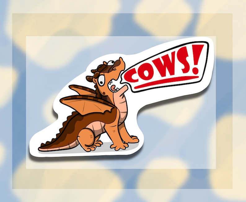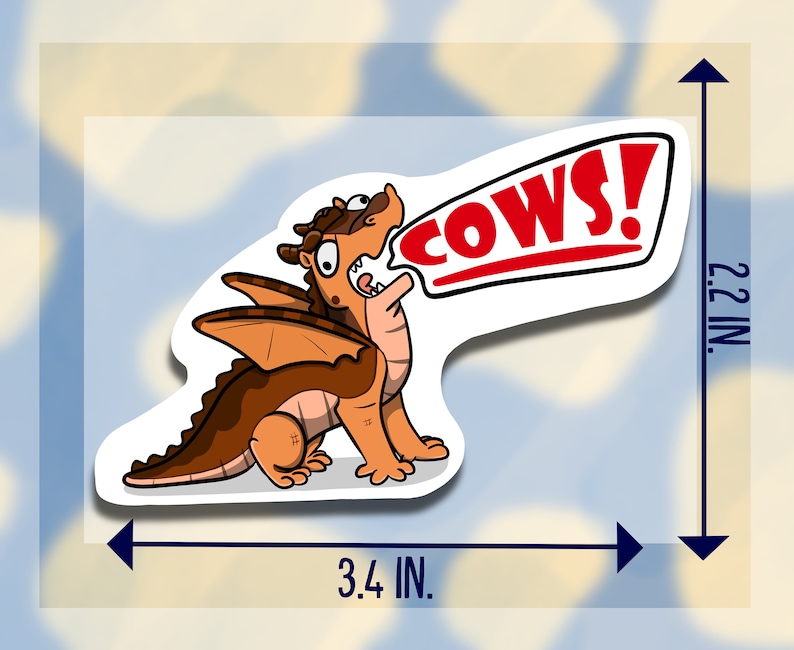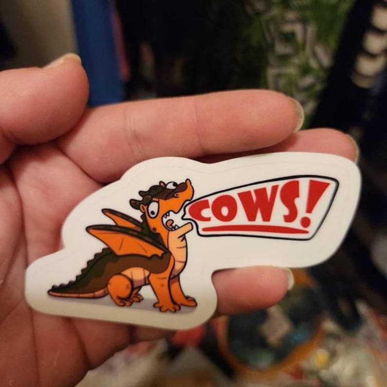Baby Clay is hungry...for COWS! They're his favorite, after all! You really should take this little guy home and give him a snack. He promises he won't eat you! Honest! Only cows if you have 'em! You will receive one hangry, screaming dragonet sticker as shown.