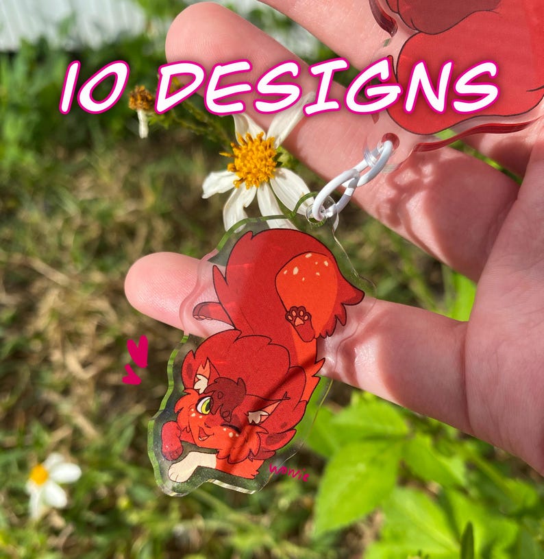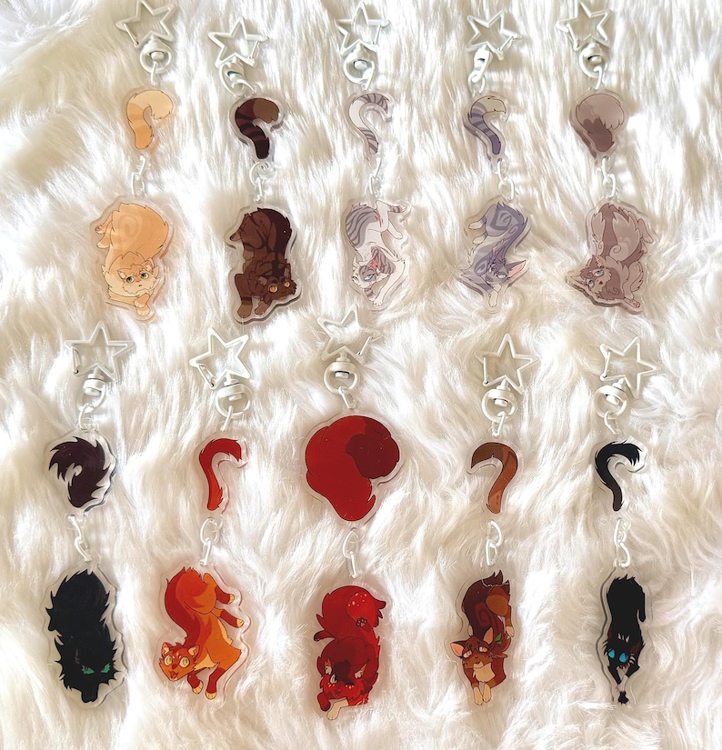 Cute two part dangling cat keychains! Each keychain is 1.5 inches in size for the tail and 2 inches for the body (except for Squilf who’s tail is 2 inches).