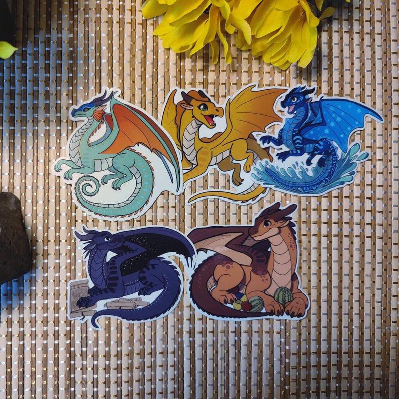 š Wings of Fire Arc 1 Sticker Pack ā Clay, Glory, Sunny, Starflight & Tsunami