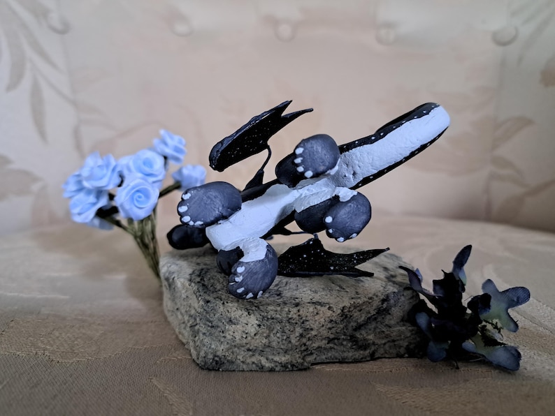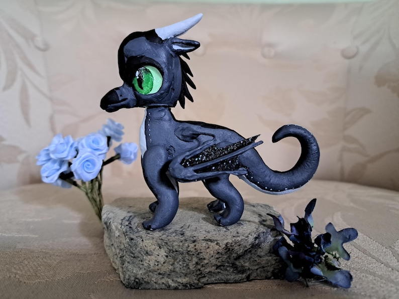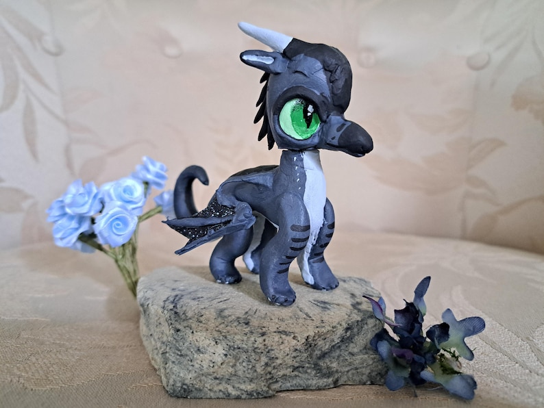 This figure is handmade. It is made out of model magic clay, Apoxie sculpt and painted with acrylic paints. Head turns but does not bobble. Great for gentle play or display. Great addition to your Wings of Fire collection. Background not included