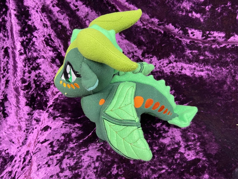 Sundew the leafwing, from Wings of Fire! This cute little girl is roughly 9 ½ in tall, and 12 in long. Choice of posable or “flappable” wings. (Wire or no wire in wings) Note picture is shown with posable wings