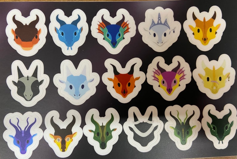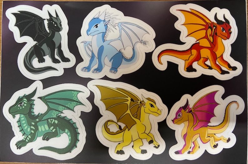 Sticker sheets are 6 in x 8”. There are 3 different poses to choose from; full body, head shot, and small emotes. Stickers are approximately 2x2”