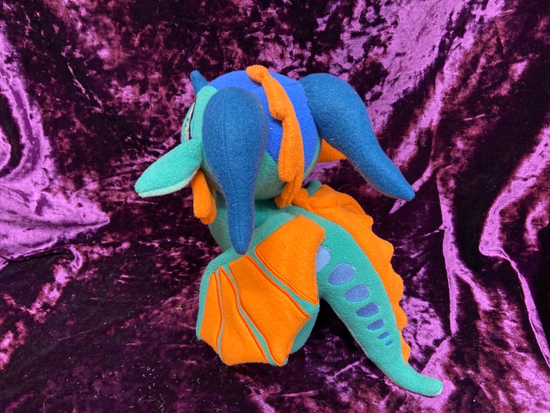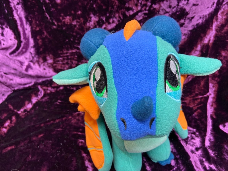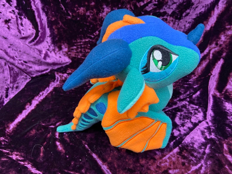Glory , is a character from the Wings of Fire book series. This cute plush is roughly 9 ½ in tall, and 12 in long. You have a choice of "posable" (wire) or “flappable” (no wire) wings. Glory in picture is with wire.