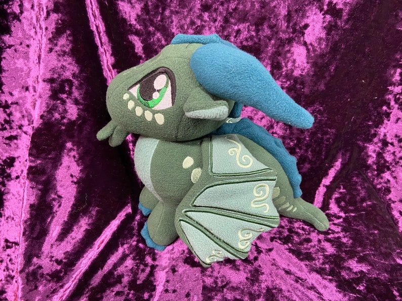 Turtle, the SeaWing, from Wings of Fire! This cute little guy is roughly 9 ½ in tall, and 12 in long. Choice of posable or “flappable” wings. (Wire or no wire in wings) Note picture is shown with posable wings.