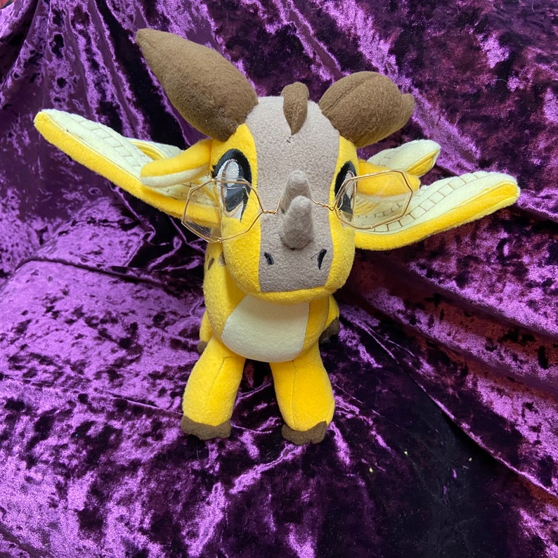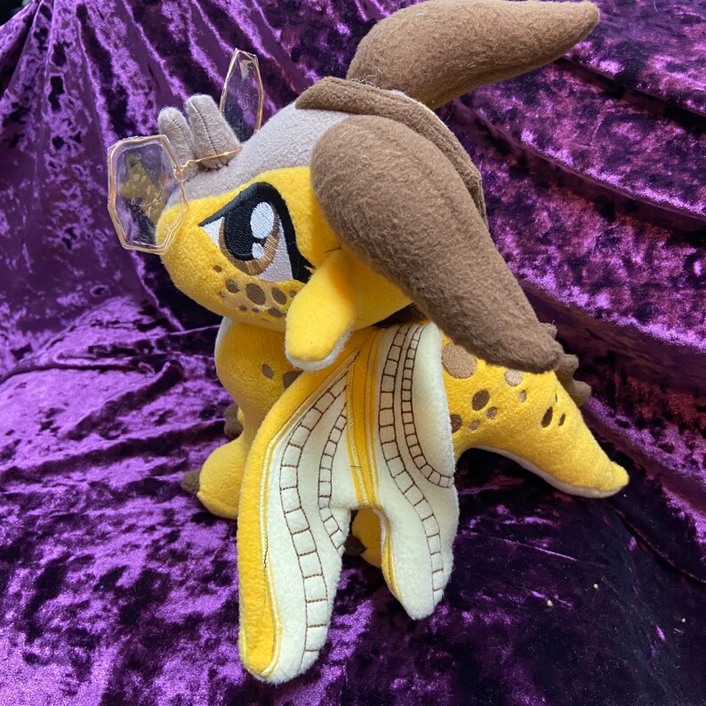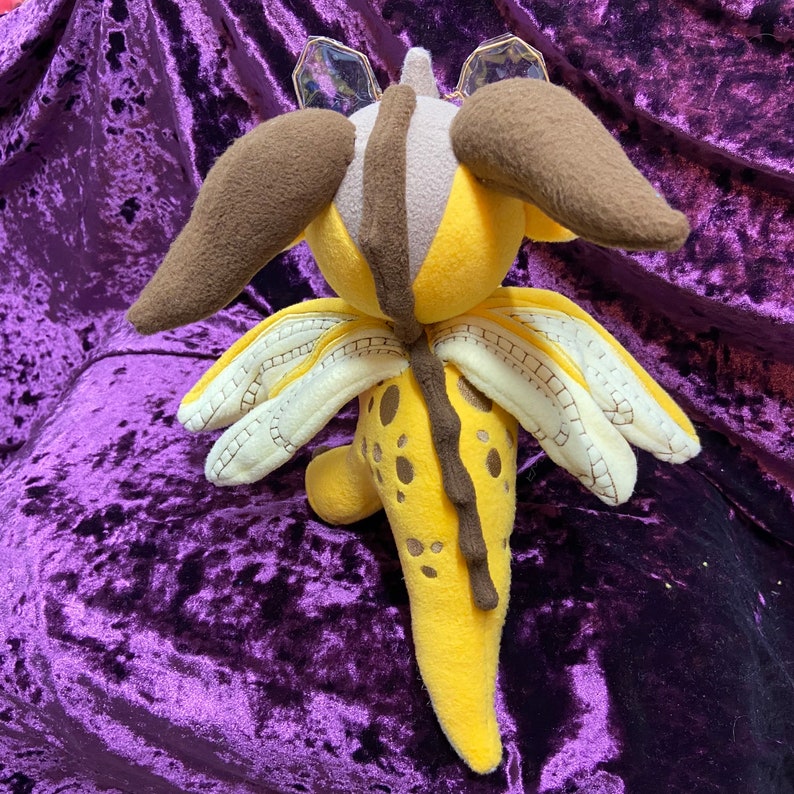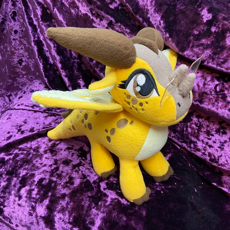 Cricket the Hivewing, from Wings of Fire! This cute little guy is roughly 9 ½ in tall, and 12 in long. Choice of posable or “flappable” wings. (Wire or no wire in wings) Note picture is shown with posable wings. This plush is hand made so each one will be a little different, and unique as are they made to order.
