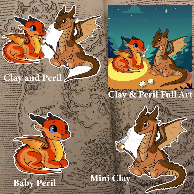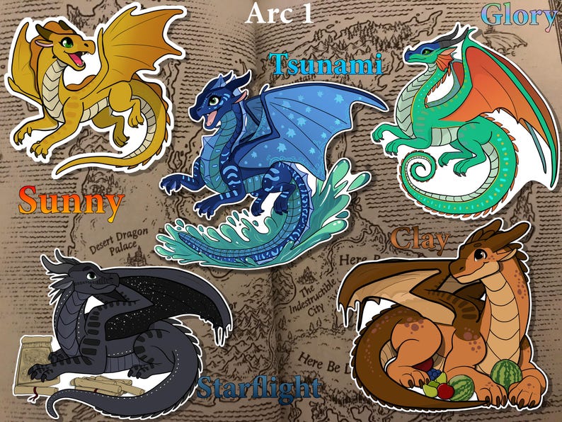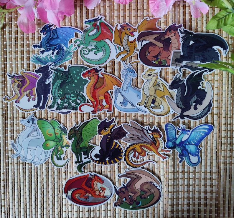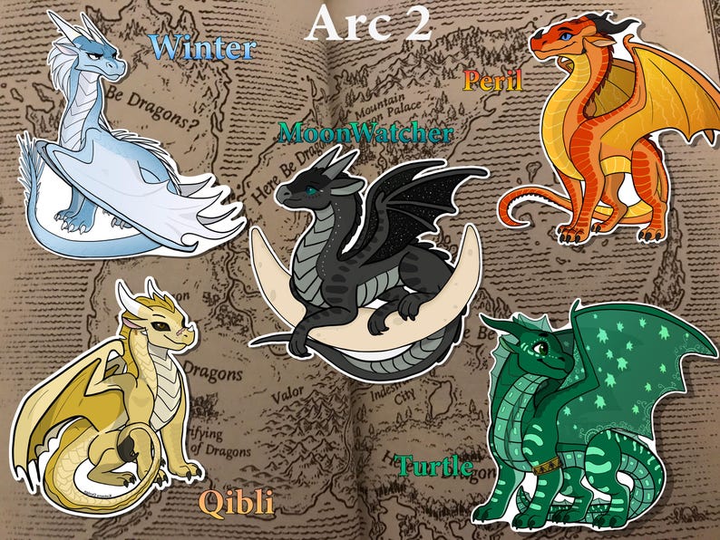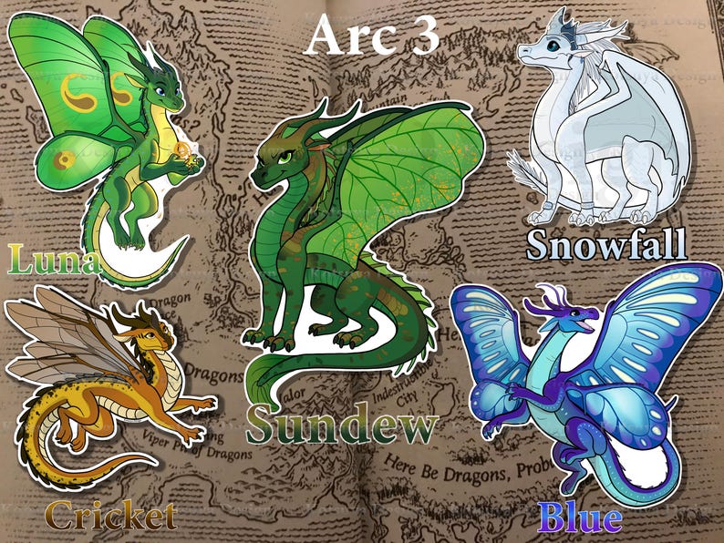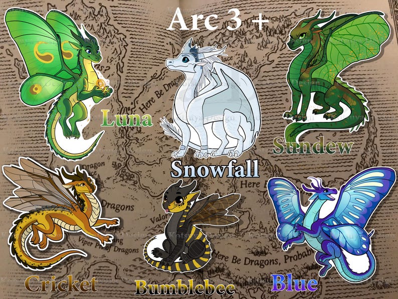 🌙 Wings of Fire Dragons : Ruby, Whiteout, Flame, Luna, Snowfall, Sundew, Darkstalker, Turtle, Bumblebee, Peril, Baby Peril, Winter, Starflight, Clay, Tsunami, Glory, Moon, Qibli, Kinkajou, Cricket, Blue, Sky and Sunny Vinyl Stickers! 🌞