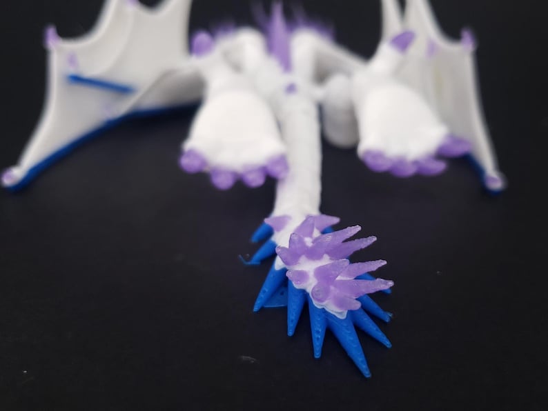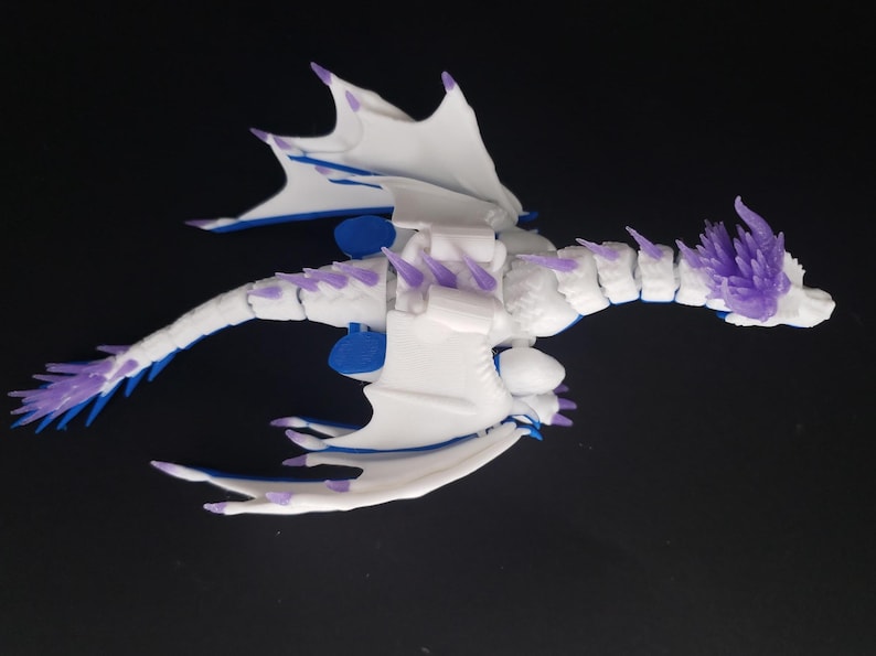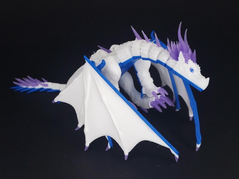Bring a frosty fantasy creature to life with this beautifully detailed, fully articulated Ice Dragon! Crafted in a striking white base with shimmering purple-blue icy spikes, this dragon captures the elegance and mystery of a creature born from winter storms.