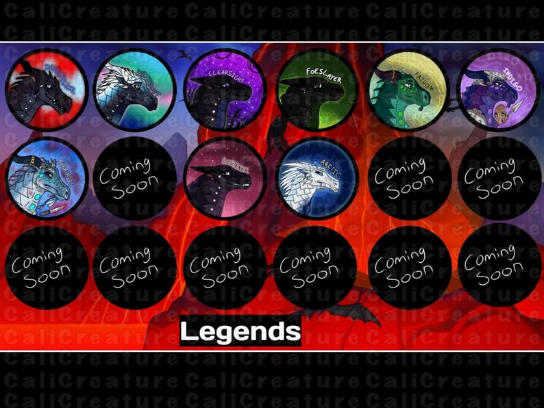 Pinback buttons featuring characters from the world of the dragons! All current characters available are pictured, with more coming soon!